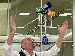 Für Staunen sorgte im weiteren Verlauf die Glas-Artistik-Vorführung, die mit ihrer Präzision und Eleganz begeisterte und dem Abend eine besondere Note verlieh. Auch der Weihnachtsmann ließ es sich nicht nehmen, vorbeizuschauen und alle Anwesenden mit kleinen Geschenken zu überraschen – ein liebevolles Detail, das für viele lächelnde Gesichter sorgte.